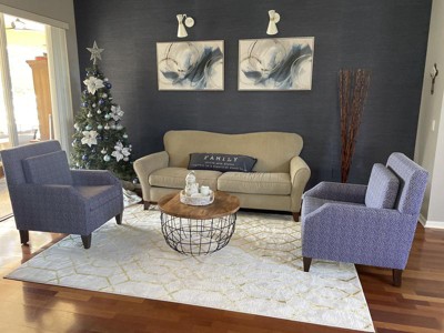I inherited my grandmother’s dining room set, which made my dining room look extremely outdated. I was looking for a classy rug to help modernize the room so I wouldn’t have to refurbish the furniture. OMG, this rug did a complete 360° on the look of my dining room. It’s such a gorgeous rug with slight gold accents. It also looks very expensive. It instantly gave the room a glow up, and now it’s my fav. room of my house. People always compliment the rug and tell me how beautiful it is. If you are hesitant about whether or not to purchase it, don’t wait any longer. Your room will look absolutely beautiful!