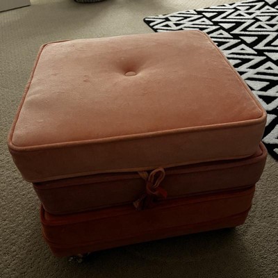 I love my ottoman! Perfect for parties and playing cards on my coffee table! The color is feminine without being overbearing. LOVE!!! (I may order another) 💖