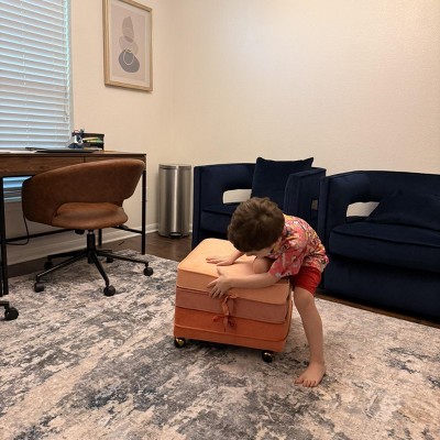 I love my Opalhouse by Jungalow ottoman. It reminds me of the mid-century color theory cabinet with the gradient blues. I removed the wheels for a more modern look. It’s perfect.