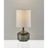 either my eyes are deceiving me, because what I see in the online photo is the glass part of the lamp is green, and the lamp shade is beige/tan. It arrive well packaged, but the glass color is black/grey with the slightest green tint, and the shade is grey. I would not describe the glass as green. If you're looking for those colors as it actually is, it's a nice lamp. It's on the smaller side as a bedside table lamp. I'll include pictures to show the color
