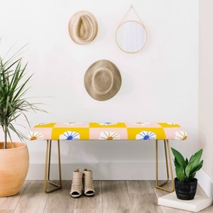 Maritza Lisa White Checkered Flowers Bench Yellow - Deny Designs