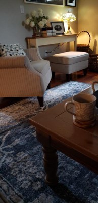 I love the beautiful colors and patterns in this rug. The charcoal grey, cream and beige is a perfect neutral for any space. We have it in our living room and love the vintage look of it.