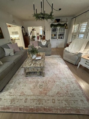 I had given up looking for a light colored rug for my room but ordered this for The attached indoor patio. After receiving this I was so in love with it, I put it in my room instead. The colors are just what I wanted, beautifully soft, feminine & has that timeworn look. It was also great that ends didn't stay curled when I unrolled it& it feels silky soft. Will definitely order again.