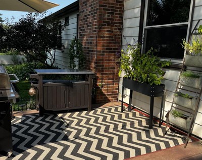This Alfresco area rug offers modern style with a unique design. The machine-woven construction is made in Egypt with Olefin material that is both durable and outdoor safe. It's perfect for high traffic areas, making it an ideal choice for your patio or deck. For best results, use with a rug pad (not included). This stylish, low-maintenance rug will be sure to add the perfect touch to your outdoor living space!