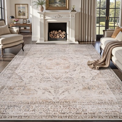 MontVoo Vintage Medallion Non-Slip Washable Rug Beige