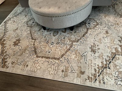 I am so happy with this rug! It’s beautiful, the colors are exactly as pictured and the price is amazing for a washable rug. Washable rugs are much thinner than a traditional rug but I realize that and don’t mind as it makes it easier to move around and It also has a very soft feel.