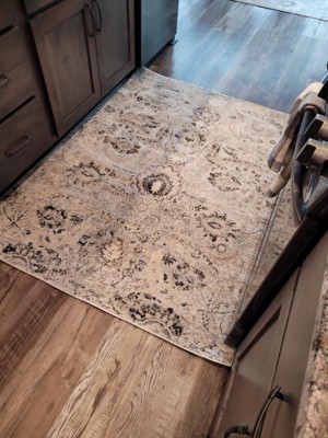 I am so happy with this rug! It’s beautiful, the colors are exactly as pictured and the price is amazing for a washable rug. Washable rugs are much thinner than a traditional rug but I realize that and don’t mind as it makes it easier to move around and It also has a very soft feel.