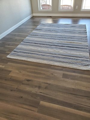 I set up my rug today, and it is beautiful! It is such a good price for what you get! It fills my living room and brings personality to my space. I love that it is washable. It is a thick and of good quality. My kids love it. I am glad our carpet will be protected, since we have young kids and I don't want to update our flooring until they are older and less messy. I'm so excited!!!