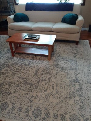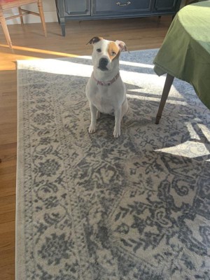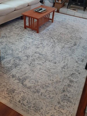 We were looking for a light colored neutral rug with a design (as opposed to one flat color) that wouldn't break the bank. Everything about this rug fit the bill! I would call it a cream-colored rug with a bluish-gray design (not medium gray as the description) but it is true to color from the pictures on the website. I actually like this better because it helped brighten up the room. We recently bought our house and are in the process of adopting a large senior dog, so I needed to find a rug quickly that is big enough to cover our living room so he won't be slipping and sliding on the floor and risking injury. Other sites were comparatively expensive and many didn't have size options this large; I am so glad we found Mark & Day! The rug is soft to the touch and flattened out quickly. We are very happy with our purchase and the price point; I don't think you can find a better deal for this size and quality!