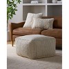 Introducing our Derby collection pouf, a stunning addition to any living space. This chic and versatile piece is manufactured in India and features a stylish wool top that adds an element of sophistication to your decor. The durable cotton bottom ensures longevity while the polybeads filling guarantees maximum comfort. Use it as a footrest, extra seating or even as a decorative accent - this pouf is designed for versatility! And when it needs freshening up, simply spot clean with water. With the Derby pouf, functionality meets style effortlessly.