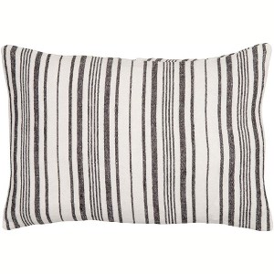 Livabliss Linen Stripe Buttoned Cottage Cream Throw Pillow - 1 of 4