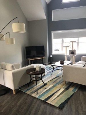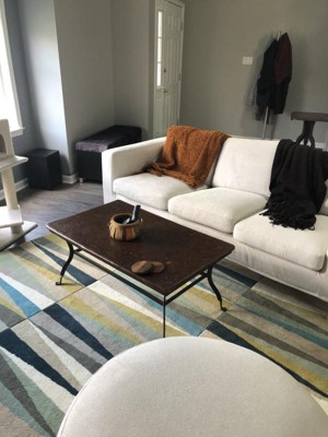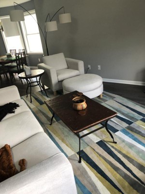 I was searching and searching for the perfect rug to match our Decour and the colors that we wanted to incorporate. This rug was the only rug that I found that had everything I wanted. We ended up having to get a bigger size because the 6 x 9 was out of stock but it still worked. Our living room is still a work in progress but I think it is definitely the glue that brings everything together in our design