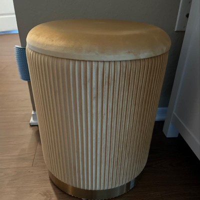 Bring a note of glamour to your home with the chic design of the Marla Pleated Nesting Ottoman Set by LumiSource. This set features a luxuriously soft pleated velvet and chic gold metal base. The smaller ottoman nests inside the larger ottoman for a space-saving design. Available in a variety of upholstery color options, choose the one that fits your space the best.