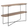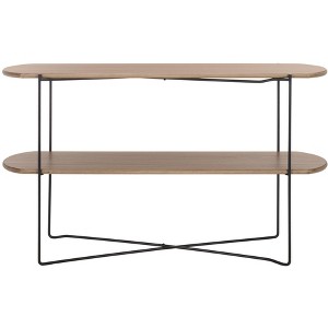 Make a sleek and sophisticated statement with our Marlee console table. The refined geometry of the console meets a blend of fine materials to make a stylish impact. The sleek, curved edges lend a chic and inviting appeal to our console table. It is perched upon slender black metal legs that intersect to make any space will feel open and sleek. Featuring a shelf to provide ample display space, our console table remains perfect for styling and personalizing your entryway, living space, or home office.