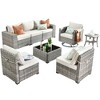 Ovios Marlton 8pc Wicker Outdoor Patio Furniture Set Conversation Sofa Sectional with a Swivel Chair and Orange Red Cushions