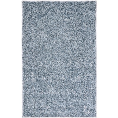 Elevate your living space with this stunning 4-foot by 6-foot area rug in a harmonious blend of blue and grey. Hand tufted in India, this small rectangular rug adds a touch of traditional charm to any room. Crafted with care, it features a unique composition of 90 percent recycled polyester and 10 percent wool, offering a soft and inviting texture underfoot. Its 1/2-inch height brings a subtle, comfortable element to your decor without overwhelming your space. Designed in a timeless traditional style, this rug complements a wide range of interiors. With no added patterns, it provides a clean and elegant look, creating a perfect backdrop for your furnishings. Transform your home with the subtle sophistication of this beautifully woven piece.