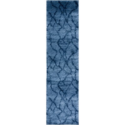 Elevate your living space with our exquisite hand-tufted area rug, measuring 2 feet 3 inches by 13 feet 0 inches, and featuring an intricate transitional style pattern that exudes timeless elegance. This rug showcases a beautiful blend of blue and grey hues that create a serene and sophisticated atmosphere in any room.