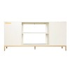 Ships in 2 seperate boxes. Upgrade your modern farmhouse design with this two-tone media stand. Spacious cabinets neatly tuck away movies, games, and blankets, while two drawers store remotes and gaming accessories. Natural rattan accents complement the light gray finish, adding a rustic feel to your home d?cor. Create a relaxing space to host the big game or binge your favorite shows with this entertainment center in your living area or game room.