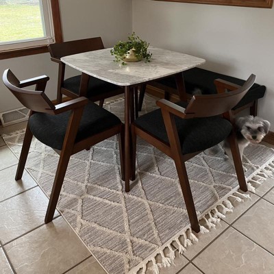 - Use a 5 x 8 rectangular rug in smaller dining areas with a table and 4 to 6 chairs.
