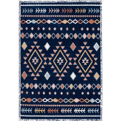 The rug's enchanting pattern draws inspiration from bohemian motifs, featuring geometric shapes and intricate borders that create a harmonious visual appeal. From the diamonds at its center to the detailed lines that frame its edges, every part of the design adds to the rug's overall beauty and character.