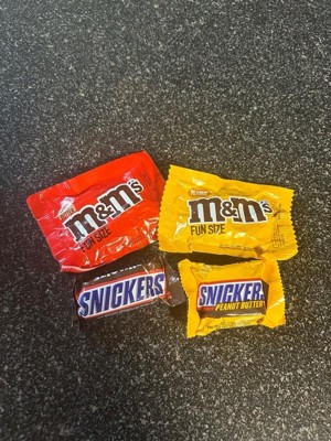 - Features a fun size assortment of SNICKERS Original Milk Chocolate Candy Bars, SNICKERS Crunchy Peanut Butter Milk Chocolate Candy Bars, M&M'S Peanut, and M&M'S Peanut Butter Candy