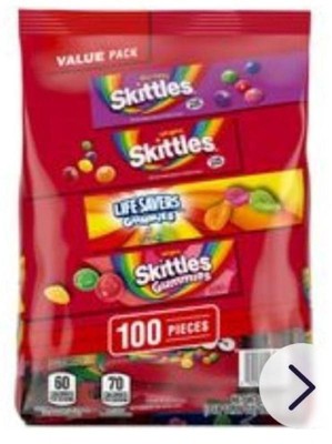 - Contains one (1) 18.56-ounce bulk variety bag filled with SKITTLES Original, SKITTLES Wild Berry, SKITTLES Gummies & LIFE SAVERS Gummies Halloween Candy