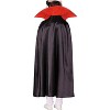 Marshmello themed vampire costume features a black and red cape and mask with red dribbles on the side of the mouth. Enhance trick-or-treating with scary costume to make the experience more exciting. Have fun at costume parties during the Halloween season, showing off the costume, dancing, playing games, and enjoying laughter and fun. Coordinate themed costumes with friends for a unified group look, making Halloween celebrations more enjoyable and memorable. Have a scary-good time in this Marshmello vampire costume! This kids' costume features a black tie-front cape with a dramatic red collar and a Marshmello vampire half mask with mesh eyes for safe visibility.