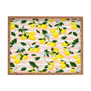 Marta Barragan Camarasa Pattern of Flowery Lemons Rectangular Bamboo Tray - Deny Designs