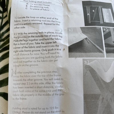 The instructions state it’s rated for up to 125 lbs, contrary to its online description of 250 lbs. Additionally the workmanship is shoddy, there are problems with the wood supports for the stool.