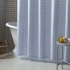 Elevate your bathroom decor with the classic and timeless Crosby Shower Curtain. Crafted from 100% cotton, it showcases a blue and white striped pattern, complemented by a white and navy pinstripe header. Decorative buttons offer a chic, shirting-inspired finishing touch. Martex Expressions blends youthful energy with playful textures to bring a bedding and bath collection that will have your space radiating with bold self-expression.