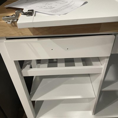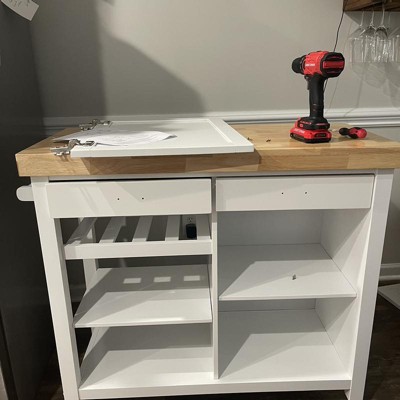 I assemble furniture for a living, and this is by far the worst kitchen cart I ever encountered. Instead of the usual "cam locks" and dowels and screws, it's held together with something called "barrel nuts." These are very poor in quality, and the holes for the bolts are misaligned.