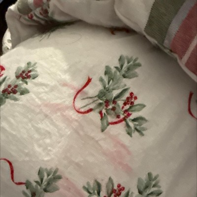 The Martha Stewart Yuletide Spruce plaid flannel comforter set brings cozy warmth and festive style to your home this season. Crafted from 100% cotton flannel, this comforter is soft, breathable, and perfect for layering through the holidays and into the colder months. The front features a classic red and green plaid pattern, a timeless symbol of holiday cheer, while the reverse side showcases delicate holly springs, each tied with a festive red ribbon, set against a clean white backdrop. Whether adorning a guest room or creating your own winter retreat, this reversible design offers the perfect combination of comfort, charm, and the signature elegance of Martha Stewart.
