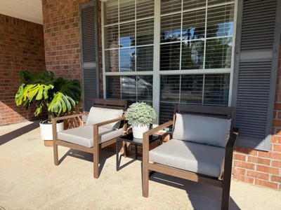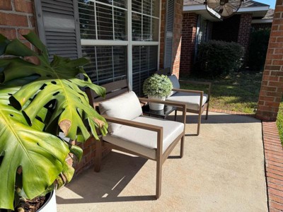 [This review was collected as part of a promotion.] These chairs totally transformed my patio! The woodgrain finish looks elegant, and the cushions are so thick and comfy. Perfect for sipping coffee or reading outside - stylish, sturdy, and super inviting.