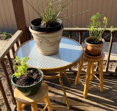 [This review was collected as part of a promotion.] My nana absolutely adores this table! She is using it for her plants and finds it so pretty and strong! The assembly was pretty easy. However, we weren’t as happy with the weathering it will have considering water can seep underneath it a bit.