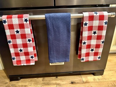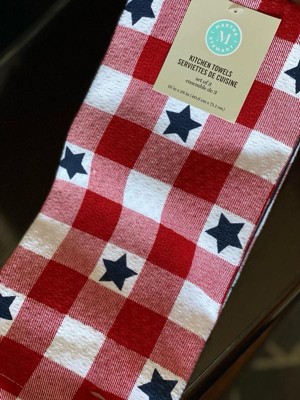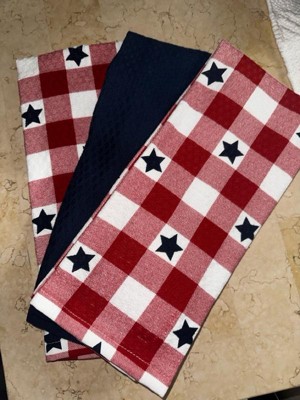 MARTHA STEWART Americana Star Gingham Holiday Kitchen Towels 3-Pack Set, 100% Cotton, Absorbent, Patriotic USA America Decor, Red/White/Blue, 16"x28"