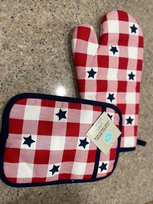 - Martha Stewart Stars Gingham Oven Mitt & Pot Holder 2-Pack Set