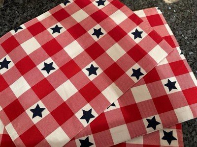 [This review was collected as part of a promotion.] Love the Americana Star Gingham Plaid Reversible placement! They are heavy duty placements, and vibrant colors!! The size is perfect. Highly recommend and can’t wait to use during the holidays.