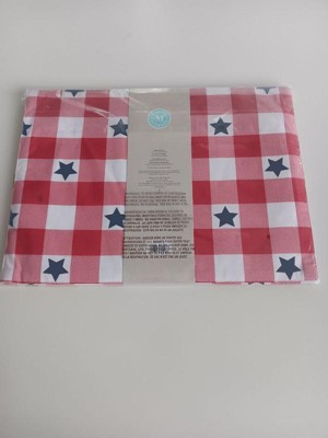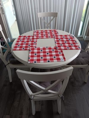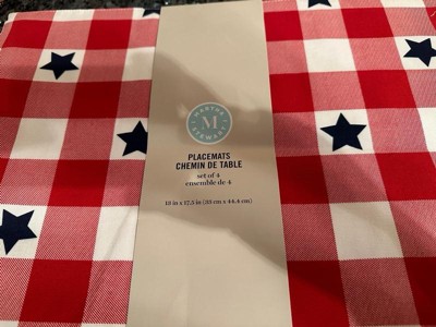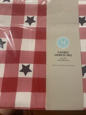 MARTHA STEWART Americana Star Gingham Plaid Indoor Placemat 4-Pack Set, Reversible, Patriotic USA America Decor, Red/White/Blue, 14"x72"