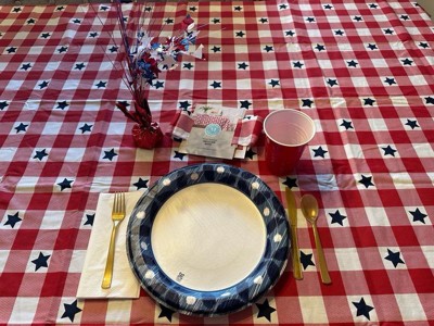 [This review was collected as part of a promotion.] Oh say can you see this tablecloth is 100% pure Stars and Stripes Americana at it’s finest. Tablecloth has a great feel. The quality is high and the theme will go perfect for your next 4th of July celebration. It drapes over our large dining room table very nicely and I’m sure we will enjoy it for years to come. This tablecloth Red, White and Blew me away! Highly recommend.