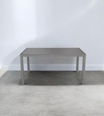 [This review was collected as part of a promotion.] This is gorgeous table. It is weather resistant and sturdy. It's very easy to clean or wipe off. It has a whole in the middle to incorporate a umbrella also. The color is gray and it fits my decor perfectly. I definitely recommend this outdoor furniture.