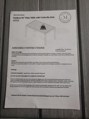 [This review was collected as part of a promotion.] Excuse the area I set this up inside my house due to poor weather this table was very simple to set up and it came with everything needed to get the job done. This is very durable and looks very elegant. This is going to look so good on my patio with the chairs around it. This is the perfect size and I just know it will be around for a long time. I am happy with this table.
