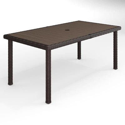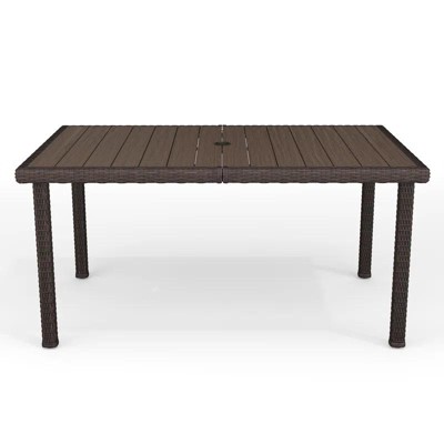 Martha Stewart Bedford 62" Indoor-Outdoor Patio Table with Engineered Wood Top in Brown Rattan Wicker
