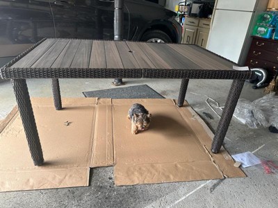 [This review was collected as part of a promotion.] I couldn’t wait for for my Martha Stewart Bedford 60” Indoor-Outdoor Patio Table with Engineered Wood Top In Rattan Wicker to come in the mail. When the box was delivered it was crazy heavy so I was hoping g that meant it was a heavy duty table. I was thrilled to be correct, this is a great sturdy, heavy duty table. The table was fairly easy to assemble the only difficult part was that the wicker made it harder to get the screws in with the Allen wrench but once we found the correct socket it was put together in no time. I can’t explain how beautiful the table is. The tabletop is a beautiful wooden color that looks great with the outer wicker. I love my new table! If you look at my photos even my little man Tucker loves it!
