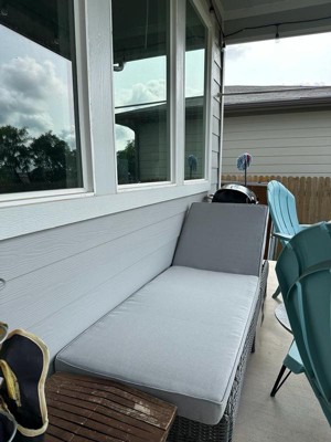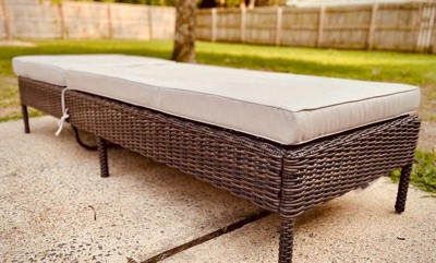[This review was collected as part of a promotion.] I love Martha Stewart products, so I was really excited to receive this chaise lounge. Right out of the box, it was relatively easy to put together in under twenty minutes with power tools and two people. Once it was all put together, we set it outside on our deck and we are so happy with it! The cushion is comfortable and has held up so far this summer with the crazy weather. We have had high heat warnings, some thunder and rain storms, and everything in between - the cushion and wicker still look good as new. I do wish that the chair came with a decor pillow, but that was an easy add-on for me to tie it in with my other deck furniture and add some color. Overall, we love this lounger and plan to buy another one to match once we finish our lower patio!