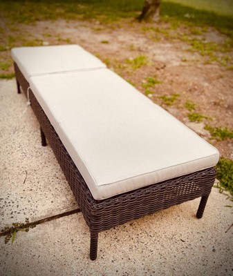 Martha Stewart Bedford Indoor-Outdoor Adjustable Patio Chaise Lounge Chair in Brown Rattan Wicker with Tan All-Weather Cushions