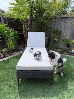 [This review was collected as part of a promotion.] Martha Stewart Bedford Patio Chaise Lounge Chair Assembly took about 30 minutes with two people and was pretty straightforward thanks to the clear instructions and included tools. The chair feels really solid and well-built—definitely not flimsy. The all-weather wicker and thick cushions give it a high-end look and comfortable feel. The adjustable back is great for switching between reading and lounging, and the cushion fabric holds up well outdoors. Bonus: it’s dog-approved, as you can see—ours made it their new hangout instantly. Great addition to our patio setup!