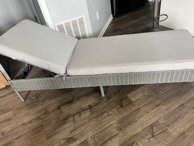 Martha Stewart Bedford Indoor-Outdoor Adjustable Patio Chaise Lounge Chair in Gray Rattan Wicker with Gray All-Weather Cushions