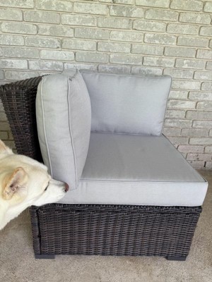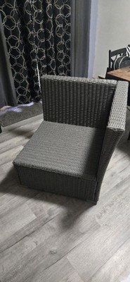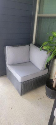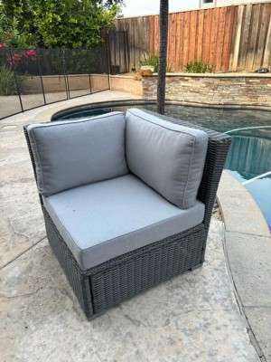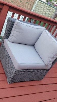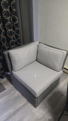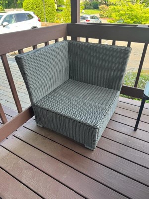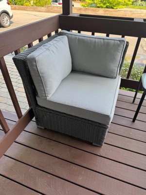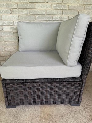 Martha Stewart Bedford Indoor-Outdoor Modular Patio Sectional Sofa Corner Seat in Gray Rattan Wicker with Gray All-Weather Cushions