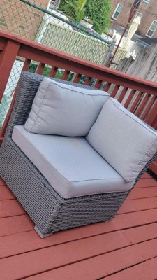 [This review was collected as part of a promotion.] Even though this is technically a cornerpiece from a modular set, I was honestly surprised by how great it looks and functions all on its own. The cushions are thick and supportive without being too soft, and the whole thing feels really high quality and built to last. The rattan material seems to be composite so it is weatherproof and will last much longer than wood. The assembly was kind of frustrating though as some of the screw holes were off by about half an inch, and the tiny hex key that was supplied was definitely not adequate. But once it was put together, I totally forgot about all that. It looks amazing, feels even better, and I’m really happy with this chair!