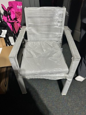 [This review was collected as part of a promotion.] This patio chair by Martha Stewart is really a very nice chair for the patio. I absolutely love the fact that there was nothing to put together except just to attach the cushion which comes with it. The cushion also has tabs that attached to the chair so it is not going to fall off or blow away. It also is removable with a zipper so that you can clean the cushion cover. This chair is all in one piece and shipped in a large box so that you don't have to have any screws or put anything together which is so awesome. It's very sturdy and it was perfect for the patio. I love the neutral gray color as well because that tends to go with everything. It definitely will be ordering three more of these to go around our patio table. They are very comfortable and they're the right height for not only your back support but the leg support